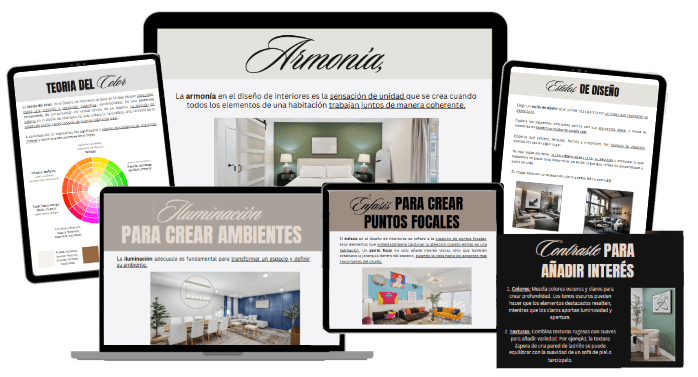 Después de invertir más de $1,500 USD en formación profesional y acumular experiencia diseñando más de 100 espacios para Airbnb, desarrollé estas guías simples para que cualquier persona, sin experiencia previa, pueda aprender las reglas clave del diseño de interiores y transformar su hogar en un lugar hermoso, funcional y lleno de estilo personal.!